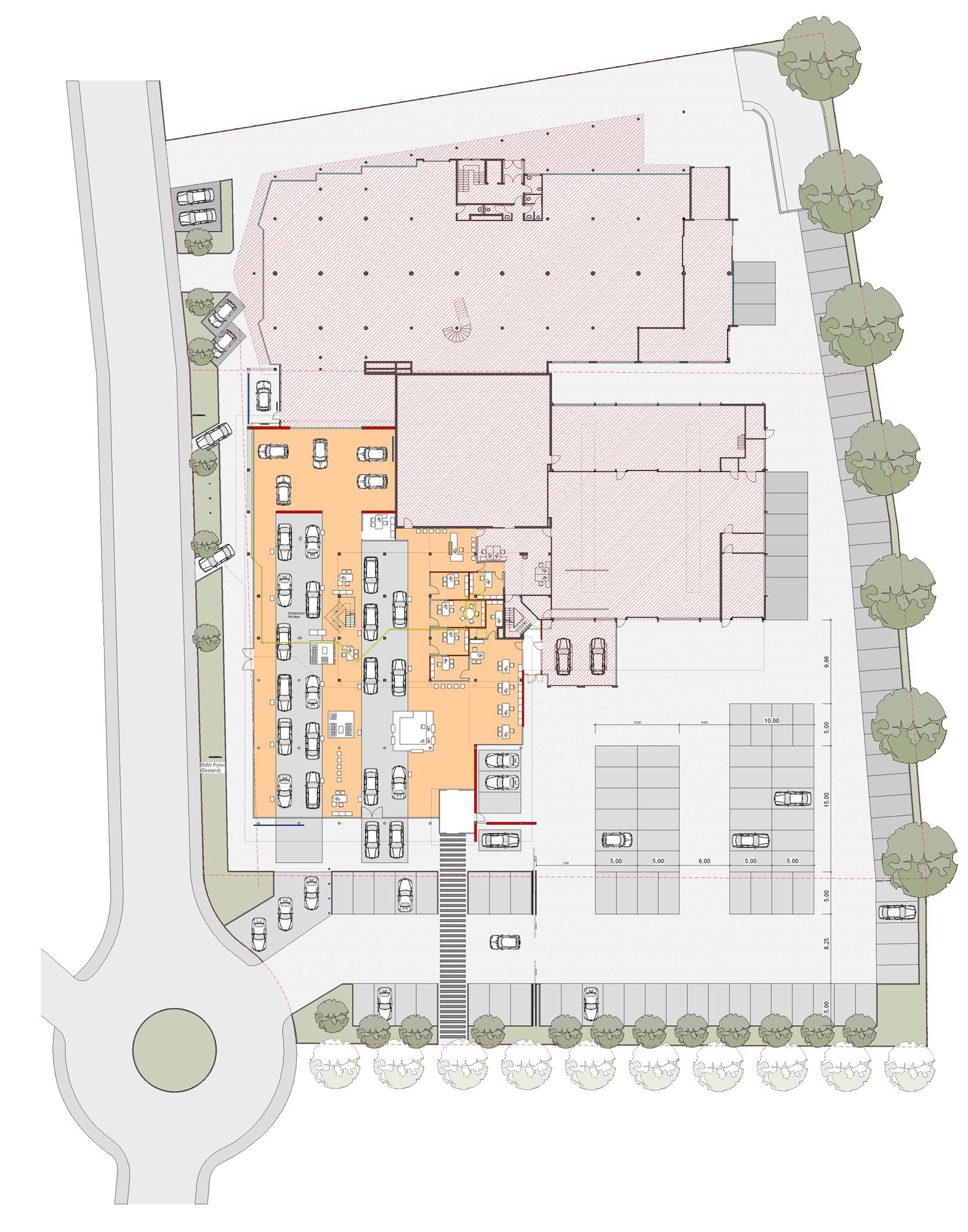 Der Abbruch der alten Ausstellung und der Erweiterungsbau erfolgten unter Aufrechterhaltung des Autohaus-Betriebs. Dafür wurde das Projekt mit 3 Bauphasen geplant und durch beinahe tägliche Bauüberwachung dennoch innerhalb von nur 7 Monaten Bauzeit realisiert.
